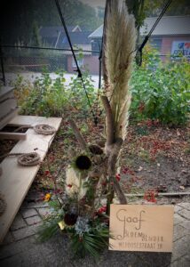 Wij denken mee in het maken van de bewuste keuzes, het bloemstuk maken op biologisch afbreekbare oase of op een stuk schors zo uit de natuur. We verwerken in de natuurlijke bloemstukken uiteraard geen ijzerdraad of krammen, maar we gebruiken touw om verbindingen te maken.